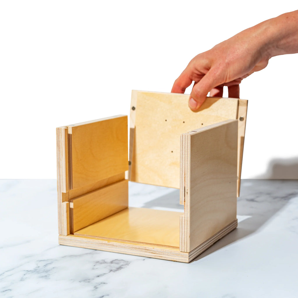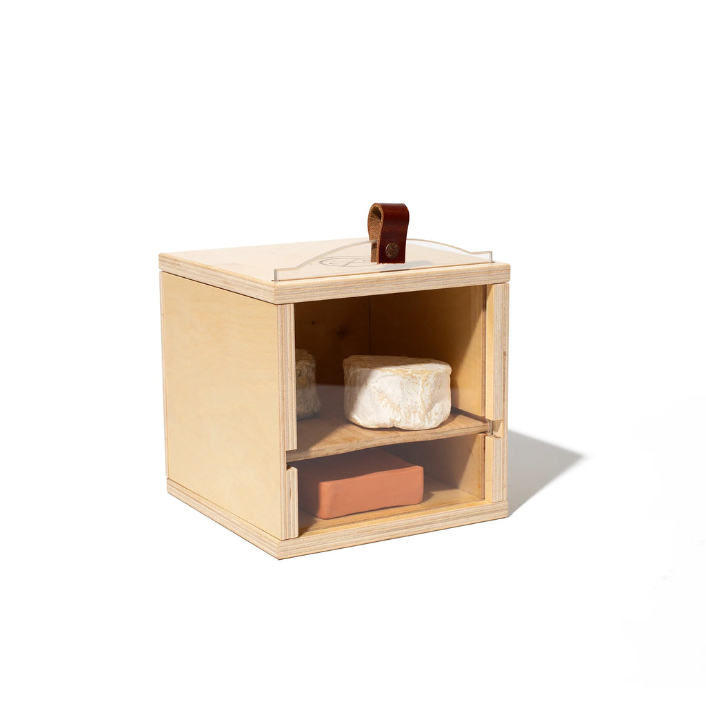 The Piatto is the smallest cheese grotto in the collection; perfect for more compact, urban living. The unique design features a strong magnet assembly. Align the panels properly and it will lock in place easily. When you don’t need it, The Piatto can store flat in the cupboard to maximize your space. Made with food safe, sustainable, non-toxic birch wood so it is resistant to mold and stains.